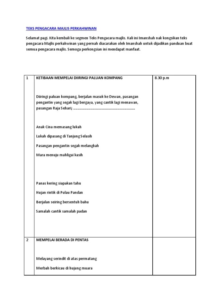 Contoh Aturcara Majlis Perkahwinan Malam / Aturcara Majlis Perkahwinan Otosection